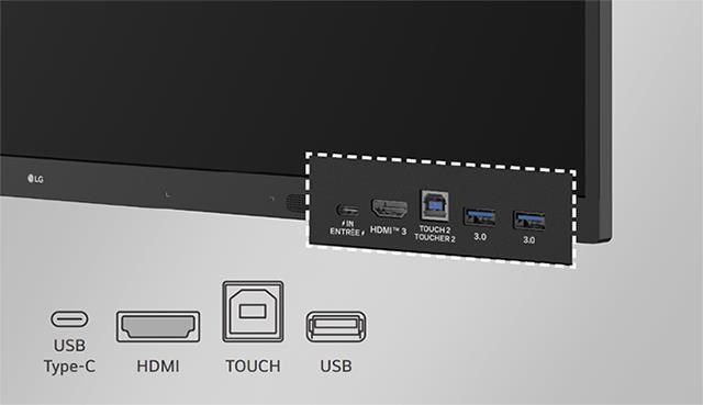 Zařízení LG CreateBoard Core je navrženo s porty umístěnými přímo na přední straně displeje. To uživatelům maximálně usnadňuje rychlé a pohodlné připojování či odpojování kabelů.