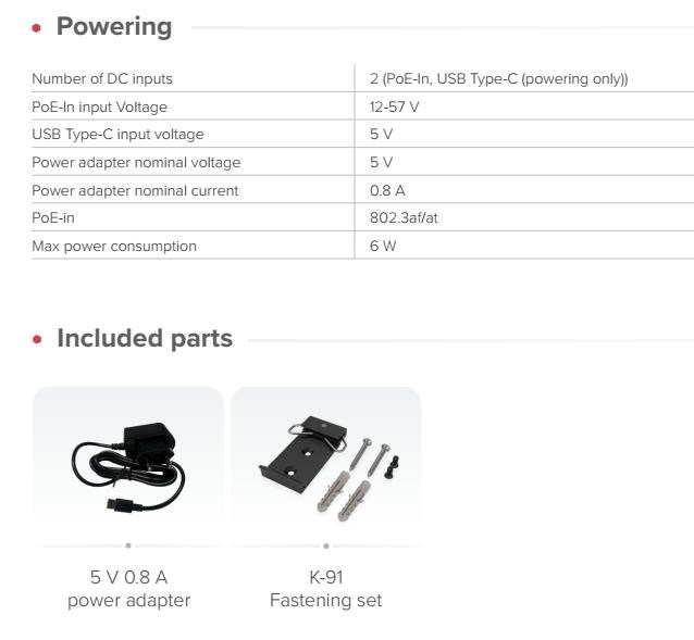 Number of DC inputs: 2 (PoE-In, USB Type-C (powering only))