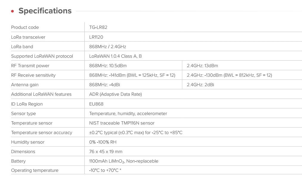 TG-LR82 podporuje také 2,4 GHz LoRa, což umožňuje nasazení bez regionálních omezení frekvencí.
