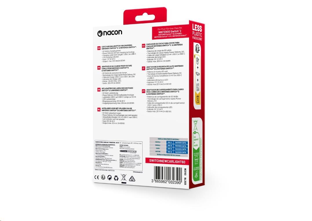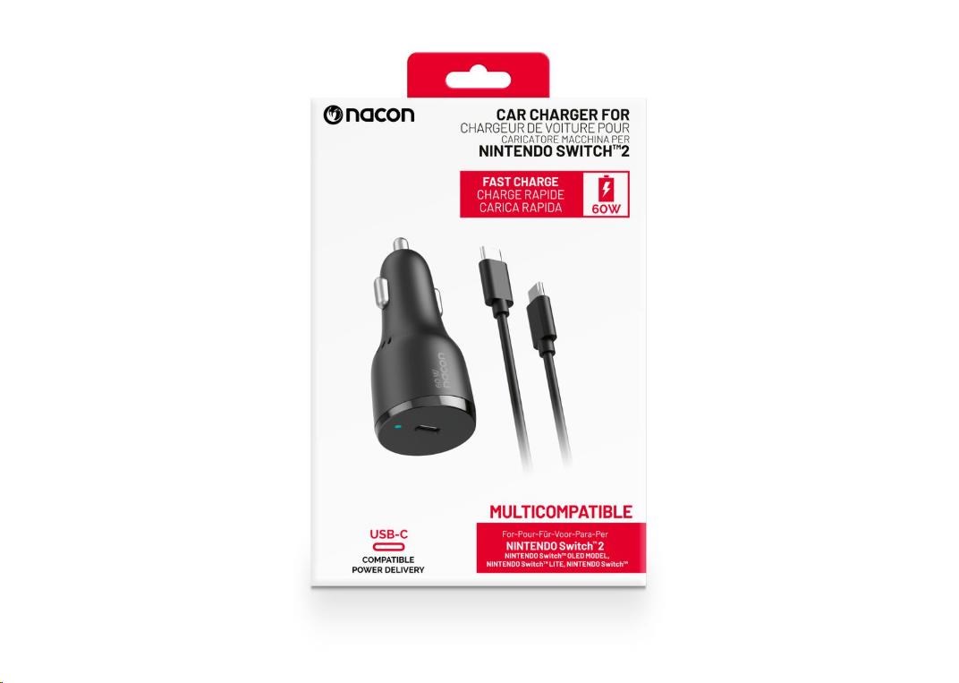 S tímto nabíjecím adaptérem od společnosti Nacon můžete při cestě autem snadno nabít nejenom novou herní konzoli Nintendo Switch 2, ale i konzoli Nintendo Switch, Switch Lite nebo Switch – OLED Model. Adaptér jednoduše zapojíte do zásuvky zapalovače v automobilu a s pomocí USB-C kabelu o délce 1,5 metru ho následně propojíte s konzolí, přičemž o aktuálním stavu jejího nabíjení vás bude informovat příslušný LED ukazatel. A protože adaptér nabízí nabíjecí výkon až 60 wattů a podporuje technologii rychlého nabíjení Power Delivery 3.0, bude vaše konzole znovu plně nabitá dřív, než se nadějete.