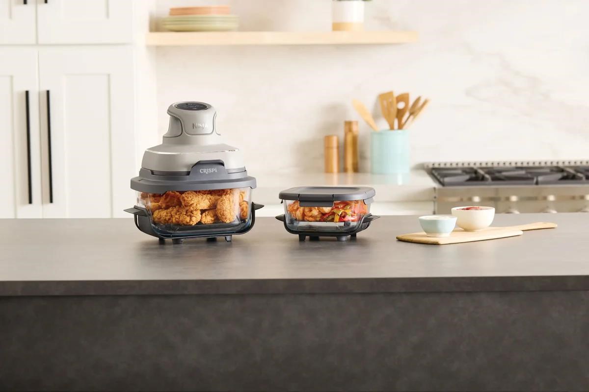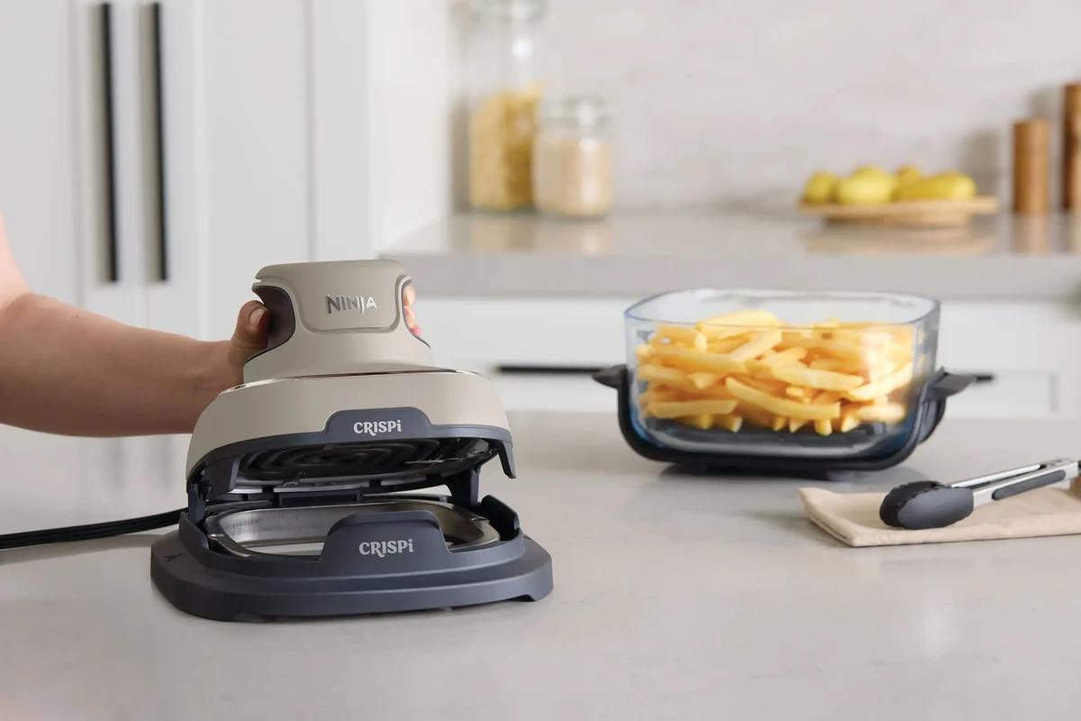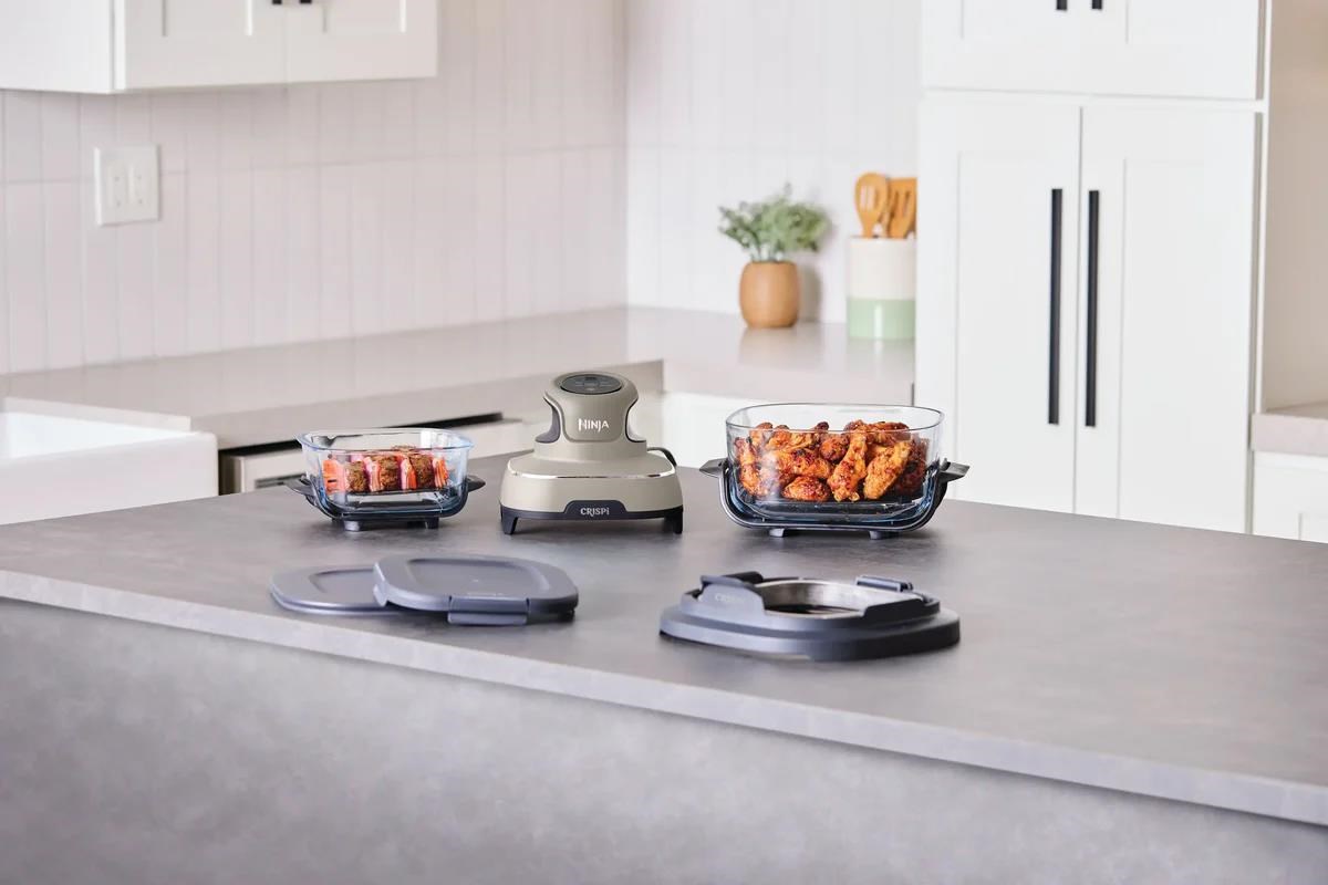Ninja FN101EUST Crispi, přenosná horkovzdušná fritéza, 4v1, šedá, příkon 1700 W, skleněné nádoby 1,4 l a 3,8 l, bez PFAS