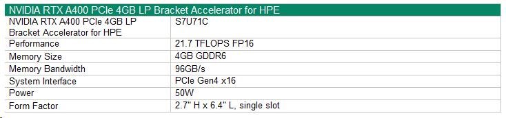 NVIDIA RTX A400 4GB PCIe Low Profile Bracket Accelerator for HPE