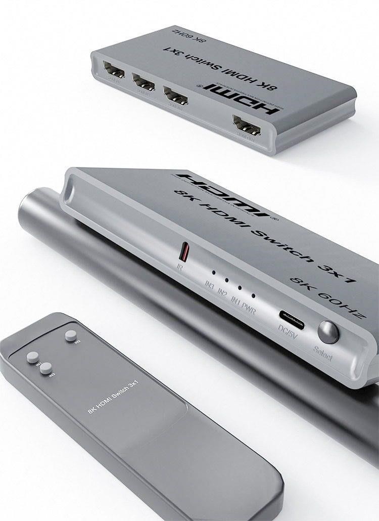 PremiumCord 8K@60Hz, 4K@144Hz HDMI switch 3:1 s dálkovým ovladačem