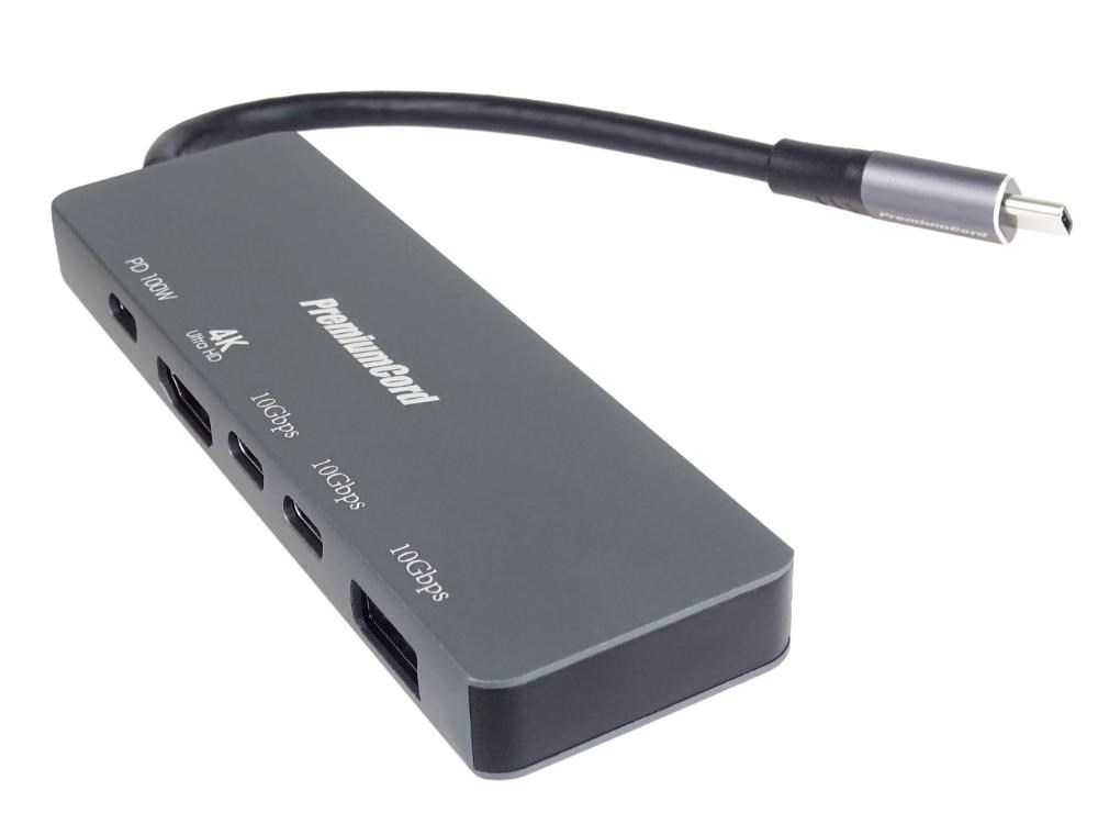 PremiumCord Adaptér USB-C na 4K@60Hz HDMI + 10G USB3.2 A + 10G 2x USB-C + PD