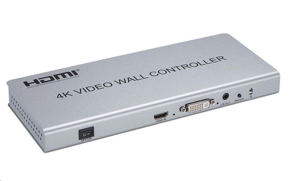 - Video Wall controller umožňuje zobrazit jeden HDMI nebo DVI signál na čtyři výstupy HDMI, na čtyři zobrazovače nebo čtyři monitory.