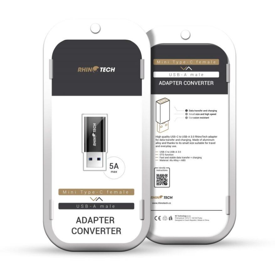 RhinoTech USB-C F na USB-A 3.0 M redukce, OTG, černá