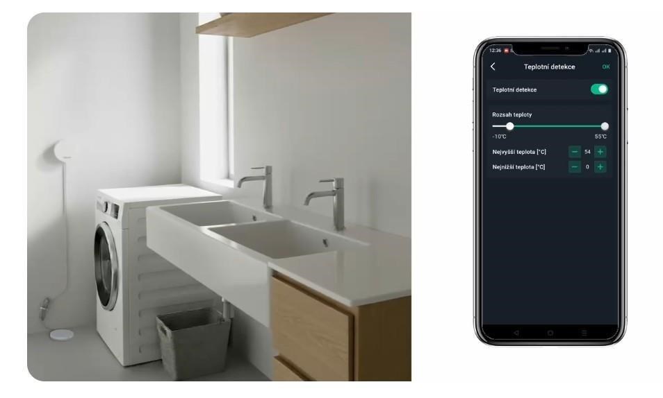 Water Guard je vybaven integrovaným teplotním senzorem, který přináší nejen přehled o aktuálních teplotních podmínkách v místě instalace, ale také možnost upozornění na překročení předem nastavených teplotních limitů – ať už jde o příliš vysokou, nebo nízkou teplotu. Jakmile se teplota vrátí do nastaveného rozmezí, uživatel obdrží informaci o obnovení normálních podmínek. Tato praktická funkce zajišťuje v případě potřeby efektivní přísun informací v návaznosti na kontrolu teploty prostředí monitorovaného prostoru a může například detekovat teplotní anomálie při výpadcích podlahového vytápění.