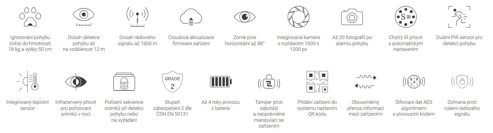 Motion Cam je špičkový bezdrátový duální PIR detektor pohybu, který je vybaven integrovanou 2megapixelovou HD kamerou. Tato kamera umožňuje nejen foto verifikaci poplachu, ale také pořízení sekvence fotografií na vyžádání ve vysokém rozlišení až 1600 x 1200 pixelů. Zařízení kombinuje moderní komunikační protokol SAFE Keeper s Wi-Fi připojením, což zajišťuje rychlý a bezpečný přenos dat. Pro poskytnutí maximální úrovně zabezpečení jsou všechny přenášené informace důkladně šifrovány. Díky této pokročilé technologii jsou pořízené snímky okamžitě a bezpečně odesílány přímo do vašeho telefonu nebo na pult centrální ochrany (PCO), což umožňuje snadnou a rychlou identifikaci příčiny poplachu.
