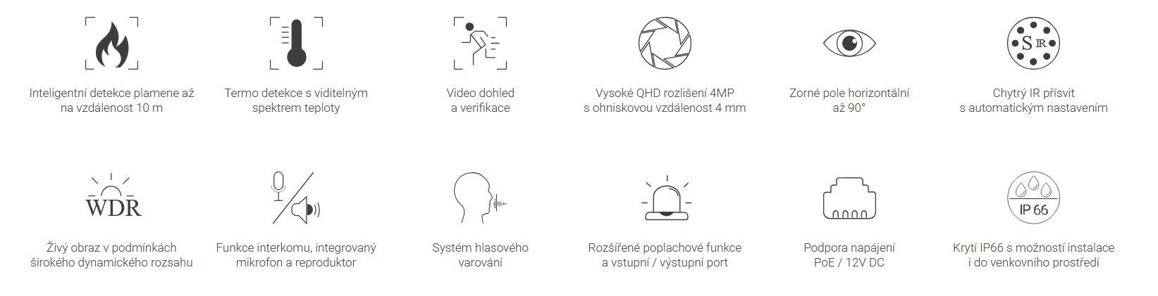 | Vzdálenost teplotní detekce | 10 m (doporučená vzdálenost) |