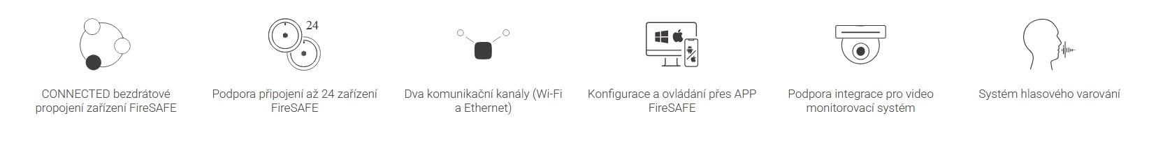 | Maximální počet propojených zařízení | 24 jednotek typu FireSAFE |