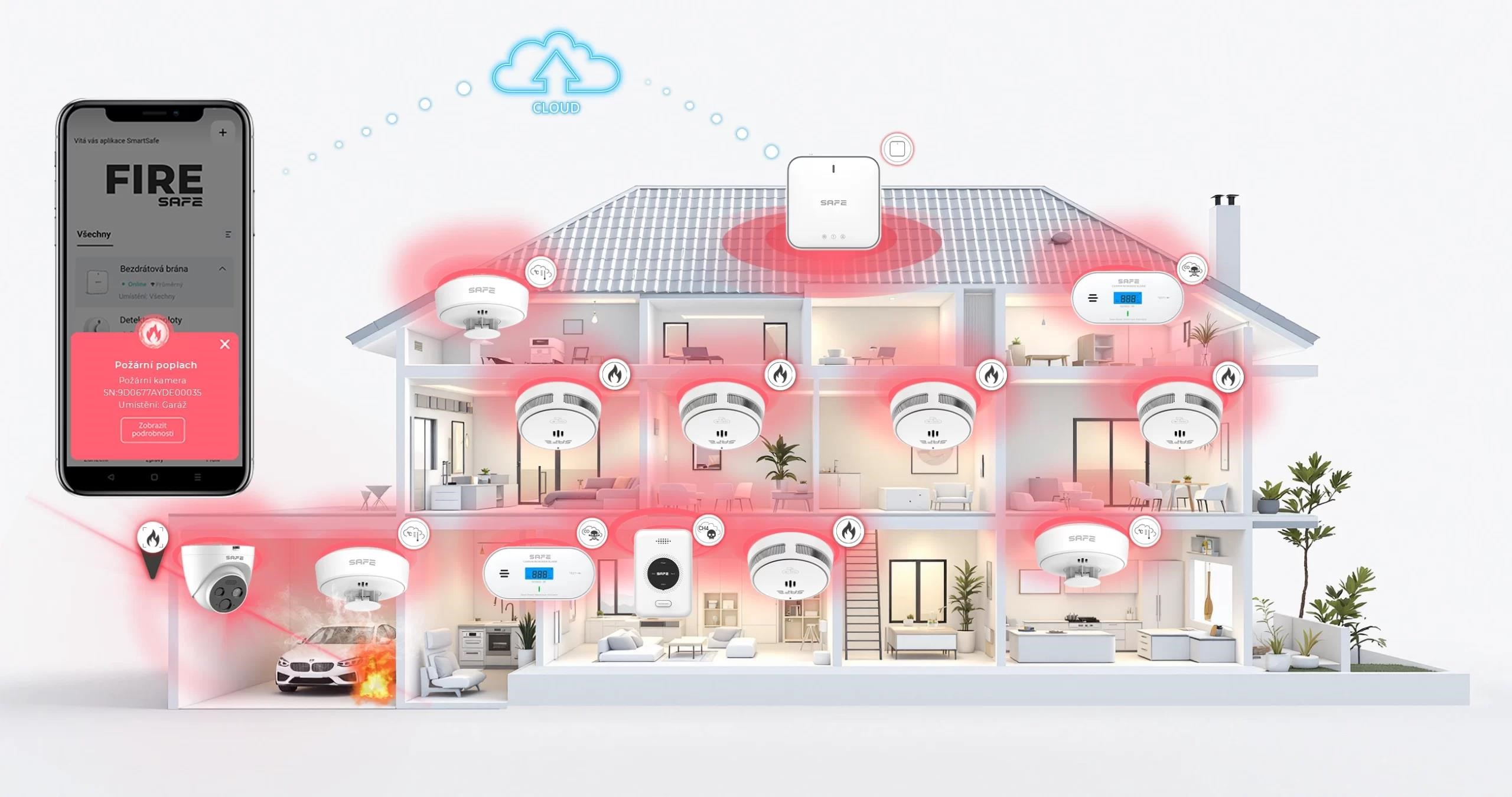 Jednoduše propojte všechna bezpečnostní zařízení FireSAFE s centrální ovládací jednotkou SAFE 50HUB – WRF a pohodlně je spravujte prostřednictvím intuitivního rozhraní bezplatné mobilní aplikace ve svém chytrém telefonu. Mějte efektivní kontrolu nad případnou hrozbou, která vám umožní okamžitou reakci na případné nebezpečí v jeho počátku. V reálném čase sledujte stav každého zařízení. Vzdáleně odkudkoli konfigurujte a upravujte nastavení vašeho požárně bezpečnostního systému. Všechny informace a okamžitá upozornění v jedné aplikaci na vašem telefonu 24 hodin denně, 7 dní v týdnu!