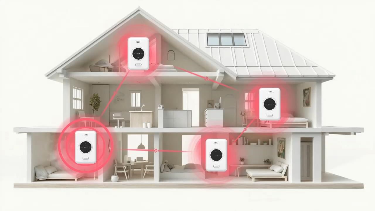 Součástí hlásiče je integrovaný RF modul, který díky funkci CONNECTED umožňuje bezdrátově propojit dva nebo více hlásičů FireSAFE a tak vytvořit vzájemně propojenou bezdrátovou síť. Pokud pak v takovém případě spustí jedno ze zařízení poplach, vyšle rádiový signál a na poplach budou reagovat i všechny další jednotky systému FireSAFE připojené v síti.