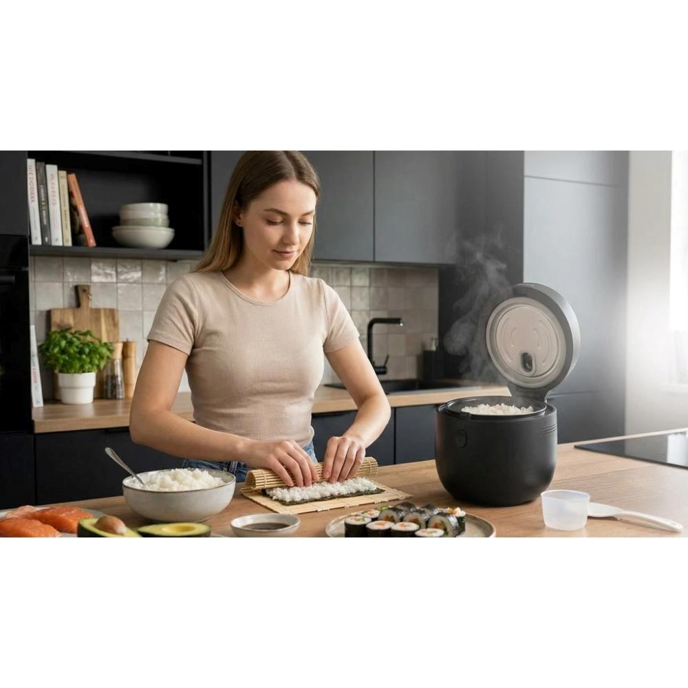 Představte si, že se vaší domácností line vůně čerstvě uvařené jasmínové rýže, na stole čeká talíř poctivého krémového rizota, tác se sushi či jiná specialita, a vy jste přitom místo postávání u sporáku stihli v klidu prostřít, doladit omáčku nebo si nalít sklenku vína. Tak přesně takovou představu mění rýžovar Salente Jasmine v realitu. Jde totiž o jeden z výjimečných spotřebičů, které dělají z vaření bezstarostný rituál. A z vaší kuchyně vyhlášenou restauraci.