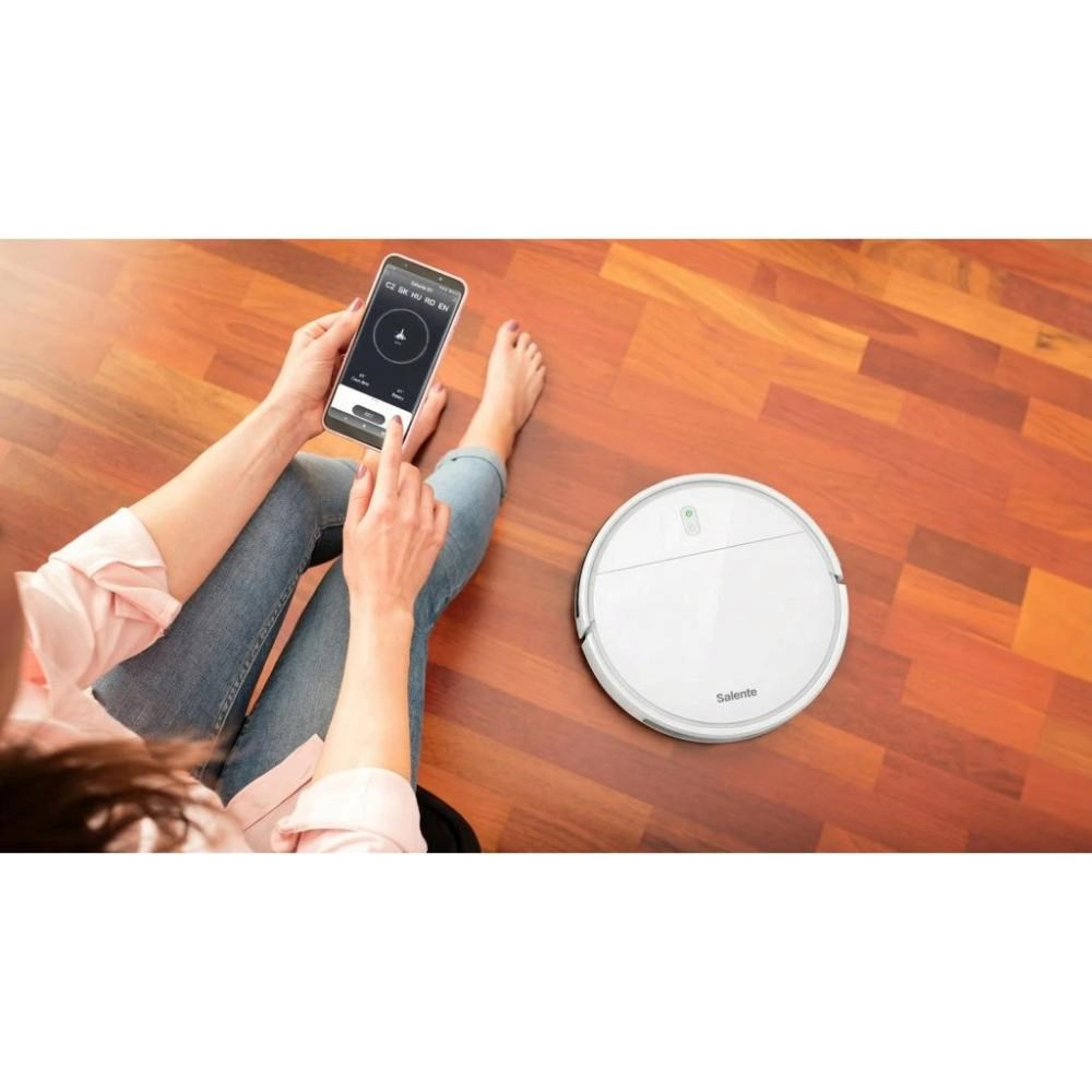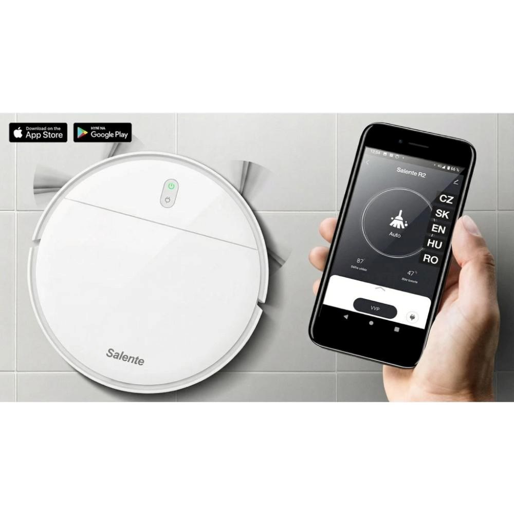obotický vysavač Salente R2 je možné ovládat mobilní aplikací v českém jazyce. Aplikace umožňuje snadnou obsluhu vysavače, podává informací o aktuální stavu nebo o úrovni nabití baterie. Vysavač podporuje i technologii ovládání hlasem a díky tomu jej můžete ovládat pomocí hlasových povelů.