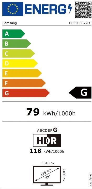 Samsung U8072F 55" TV, 4K Ultra HD, HDR, Tizen, Apple AirPlay, OTS Lite, Wi-Fi, Bluetooth, HDMI, USB