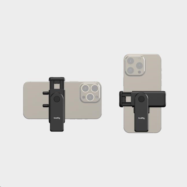 360stupňová rotace držáku umožňuje bezpečné a rychlé přepínání mezi orientací na výšku a na šířku, zatímco duální úchyty cold shoe umožňují připevnění kompatibilního příslušenství.
