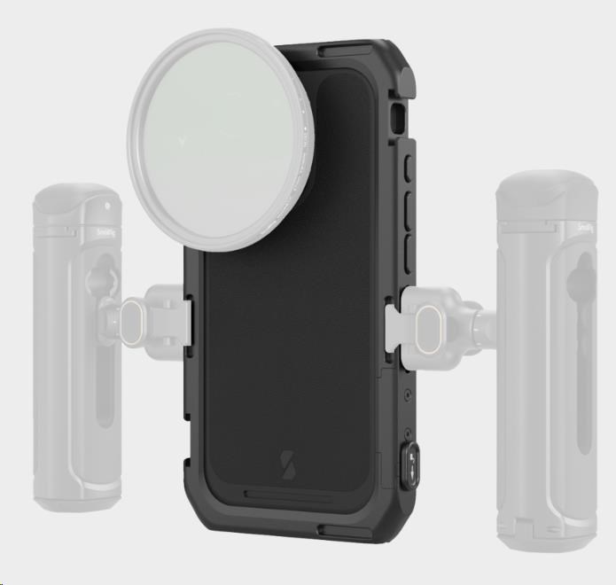 Pouzdro vybavené rychloupínací zadní deskou T-mount slouží jako každodenní ochrana telefonu. Backplate T-mount lze přepínat pomocí ořezávacího kroužku, backplate objektivu se 17mm závitem nebo adaptéru s 67mm magnetickým filtrem pro lepší optický výstup.