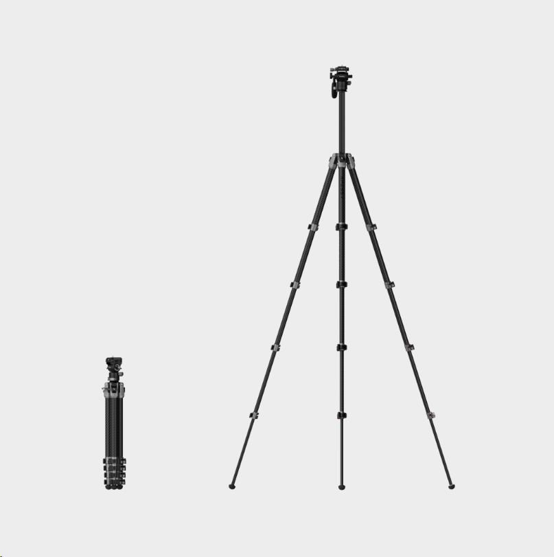 Tento stativ je vyroben z vysoce pevných uhlíkových vláken a navzdory svým kompaktním rozměrům zajišťuje vynikající stabilitu.