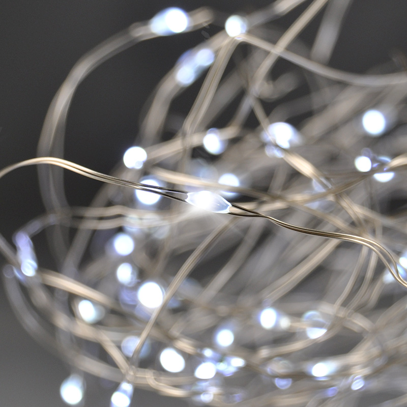 Solight vánoční řetěz stříbrný, 50x mini LED, 5m, 3 x AA, studené světlo