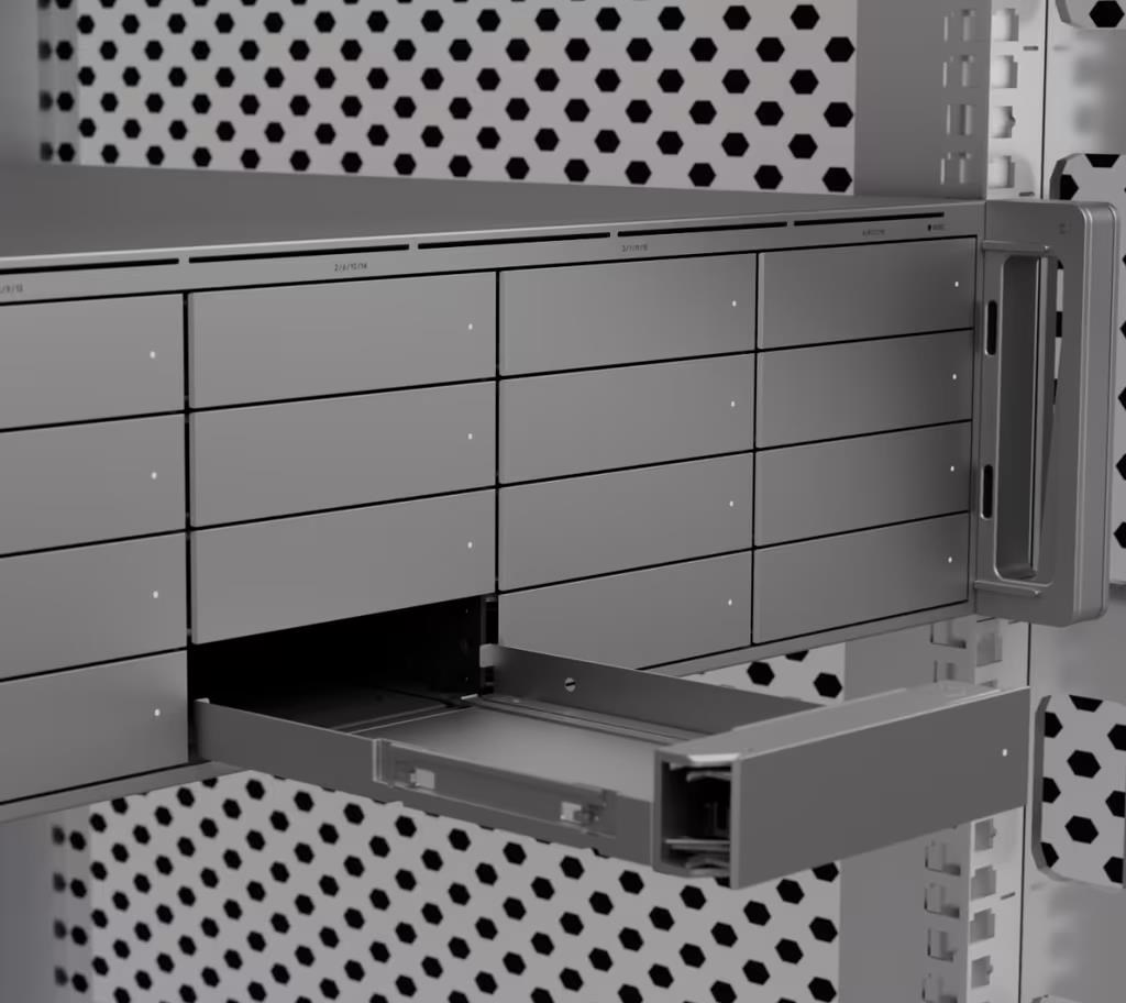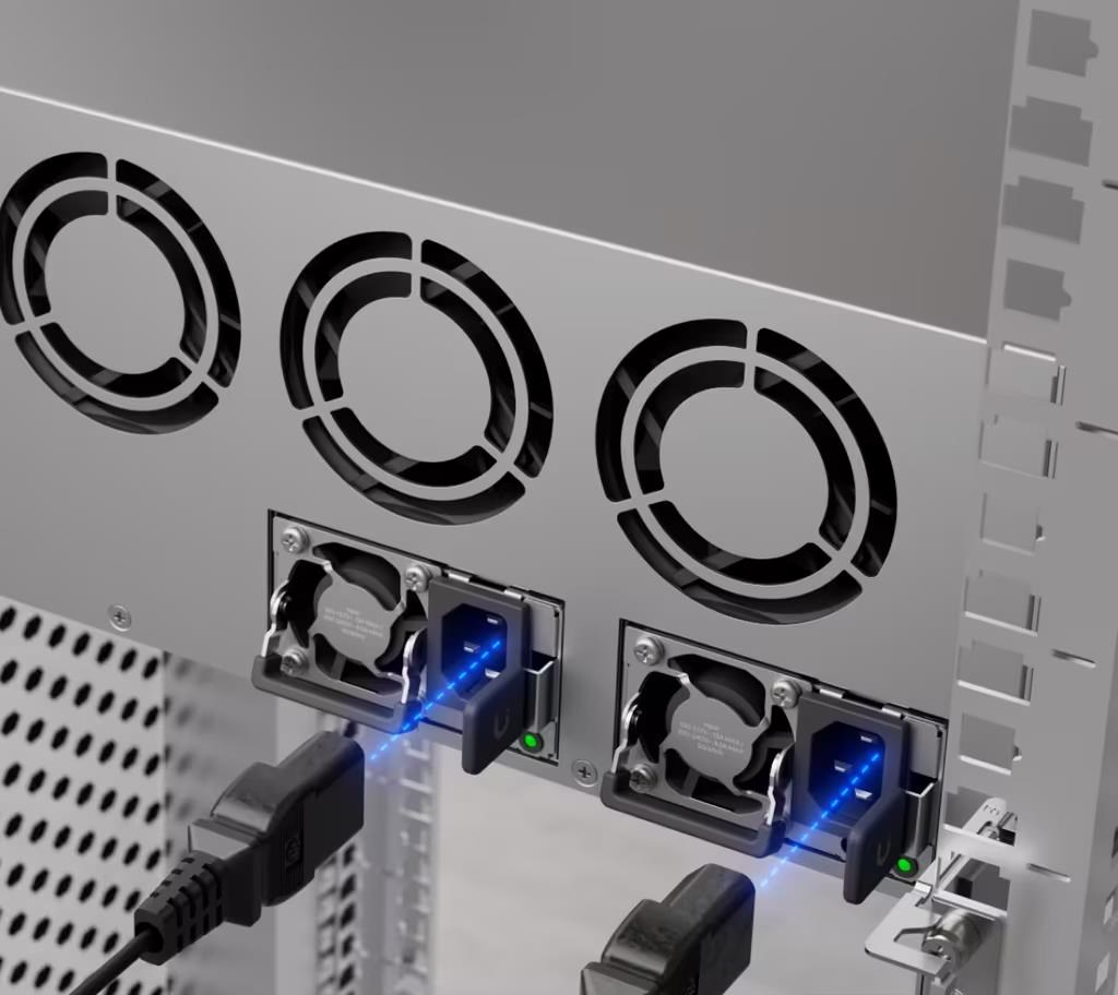 3U UniFi Protect NVR with 16-bay support for 2.5"/3.5" HDDs/SSDs, up to (300) 4K or (500) Full HD cameras, hot-swappable power supplies and optional 16-bay storage expansion units.