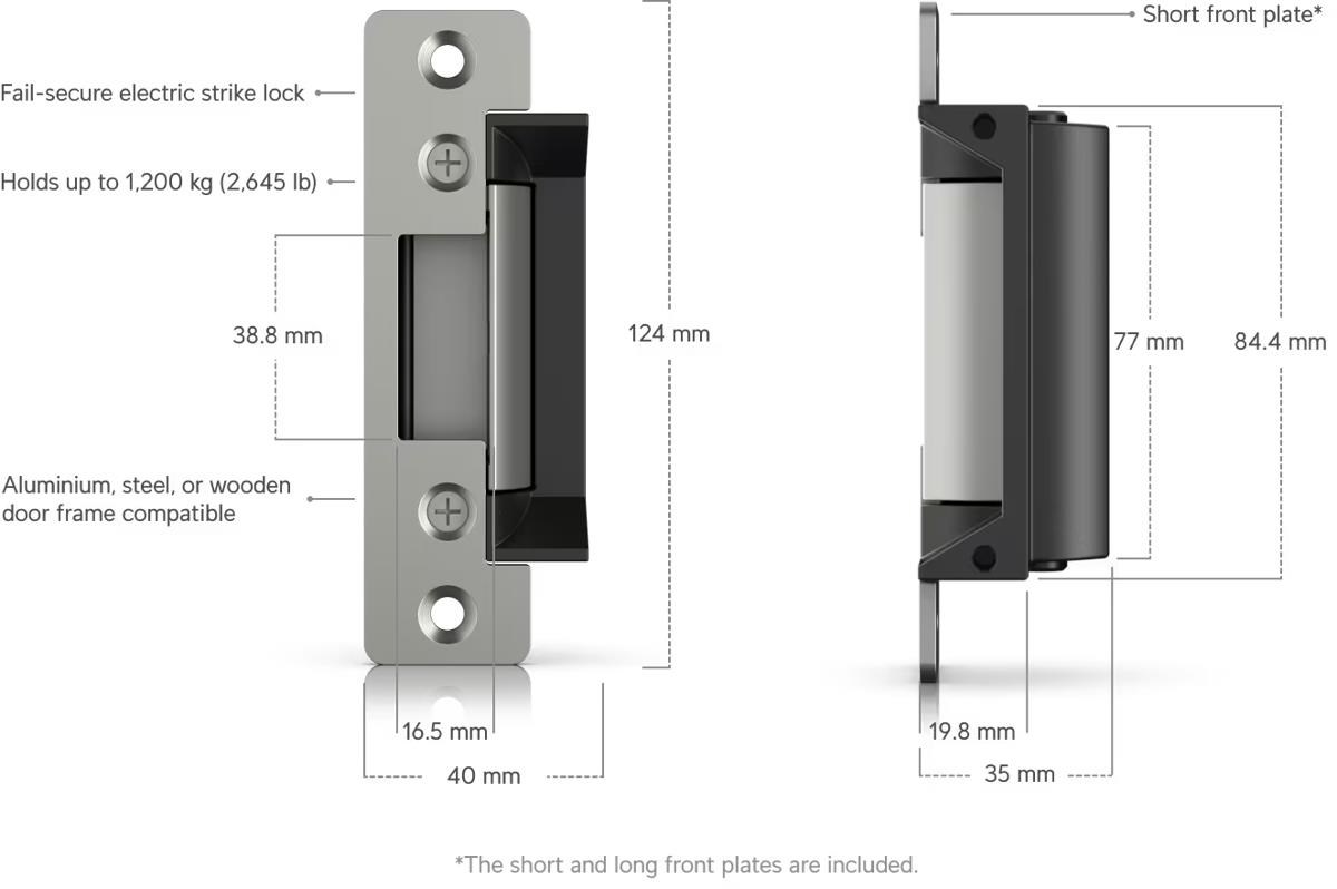 Popis produktuBezpečnostní elektrický zámek určen k propojení s UniFi Access Hub. Zámek je typu fail-secure, při selhání zůstane uzamčen. Může být nainstalován do dřevěných, ocelových i hliníkových rámů. Zámek odolá síle až 1200kg. Napájení je přes dvoužilovou svorkovnici 12V DC / 400mA.
