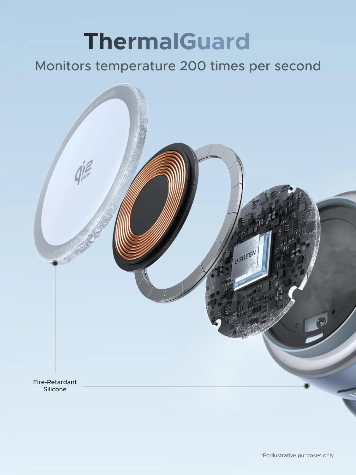 - Široká kompatibilita: Kompatibilní s iPhone 17/16/15/14/13/12, AirPods 4/3/2/Pro 3/2 a dalšími zařízeními s podporou Qi. Pro nejlepší výkon se doporučuje magnetické pouzdro nebo použití bez krytu