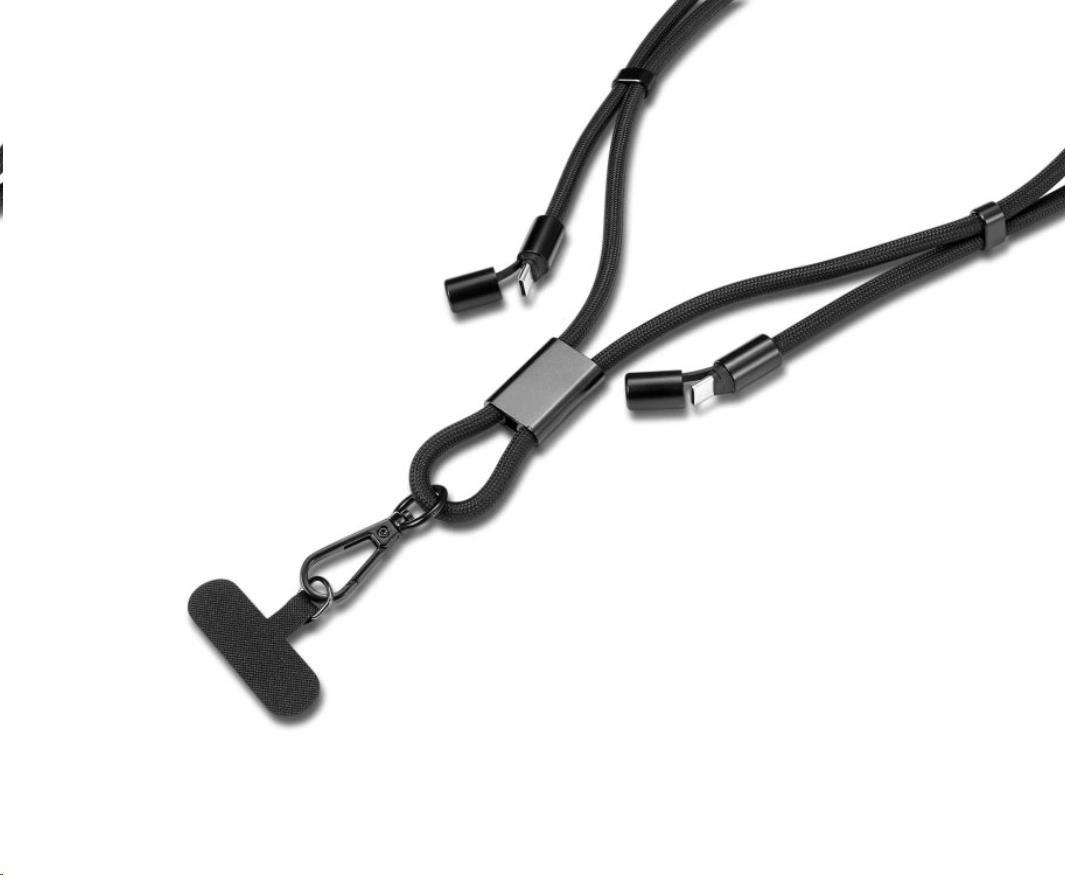 Stylový popruh na krk/rameno se zintegrovaným kabelem USB-C. Telefon máte vždy po ruce a zároveň i kabel pro nabíjení a přenos dat – ideální na cesty, festivaly i každodenní nošení.Dvě v jednom – crossbody lace + kabel USB-C pro nabíjení a data.