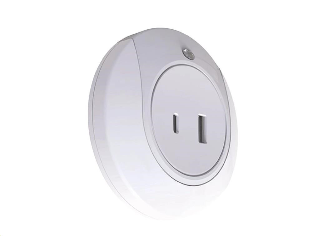 Produkty:Dekorační osvětlení; Kategorie Svítidla:Interiér bytu; Druh Svítidla:Noční do zásuvky; Barva těla svítidla:Bílá; Světelný zdroj:Integrovaný LED; Barva světla:Teple bílá; Napájení:Výměnné baterie