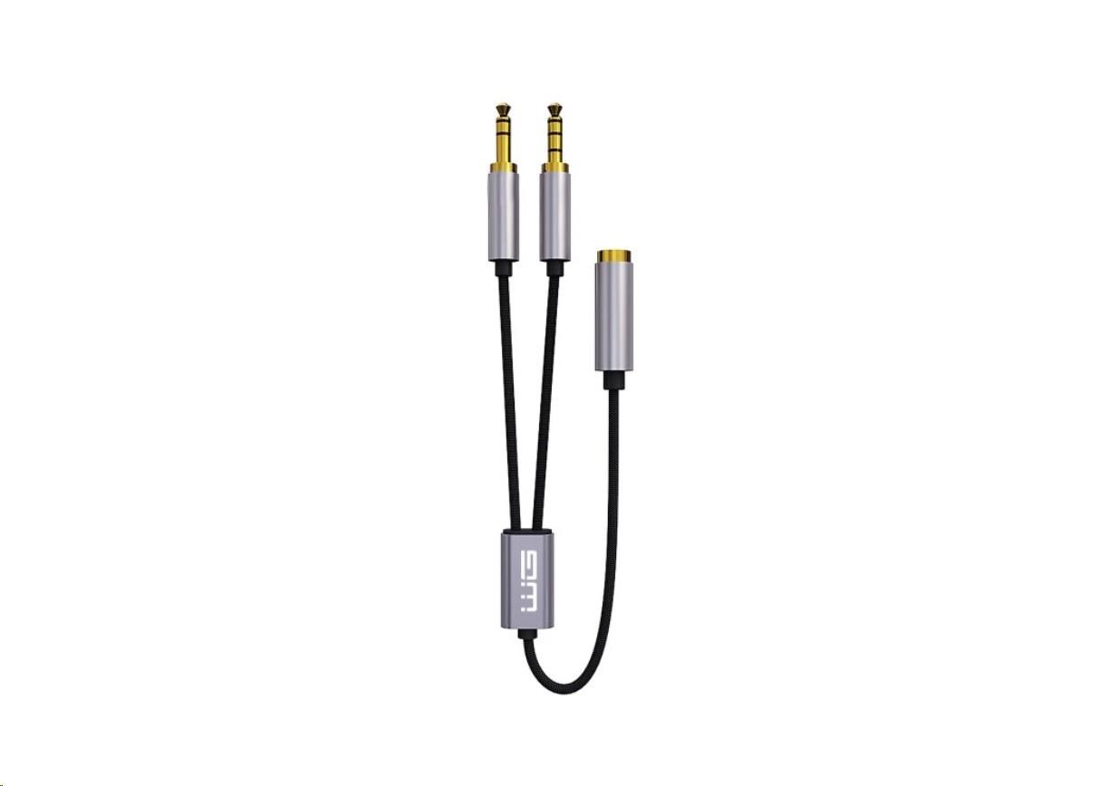 Propojuje headset (sluchátka + mikrofon) se zařízeními s odděleným vstupem pro zvuk a mikrofon