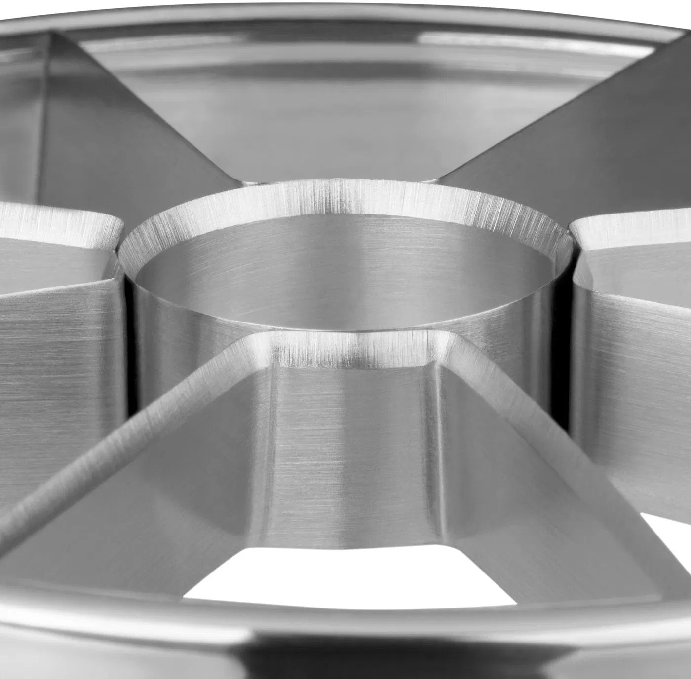 - Materiál Cromargan®: Rám je vyroben z ušlechtilé nerezové oceli 18/10, která je chuťově neutrální, odolná proti ovocným kyselinám a vysoce hygienická.