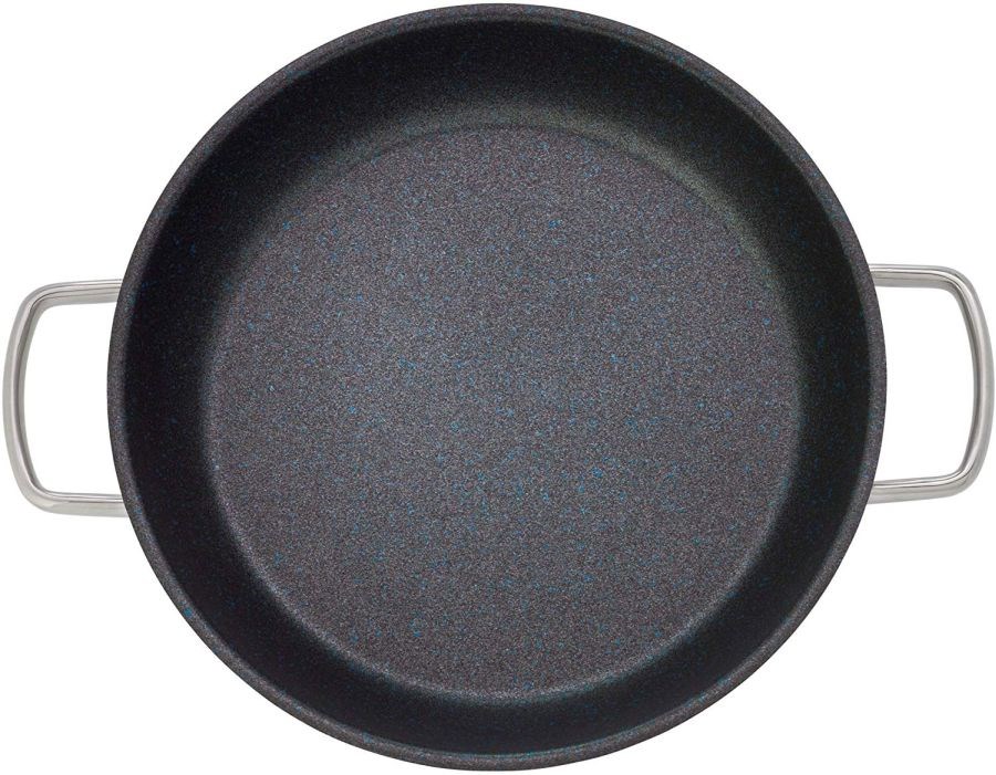- Vysoká odolnost: Pánev je vyrobena z vícevrstvého materiálu s jádrem, které zaručuje bleskový rozvod tepla a dlouhou stabilitu tvaru.