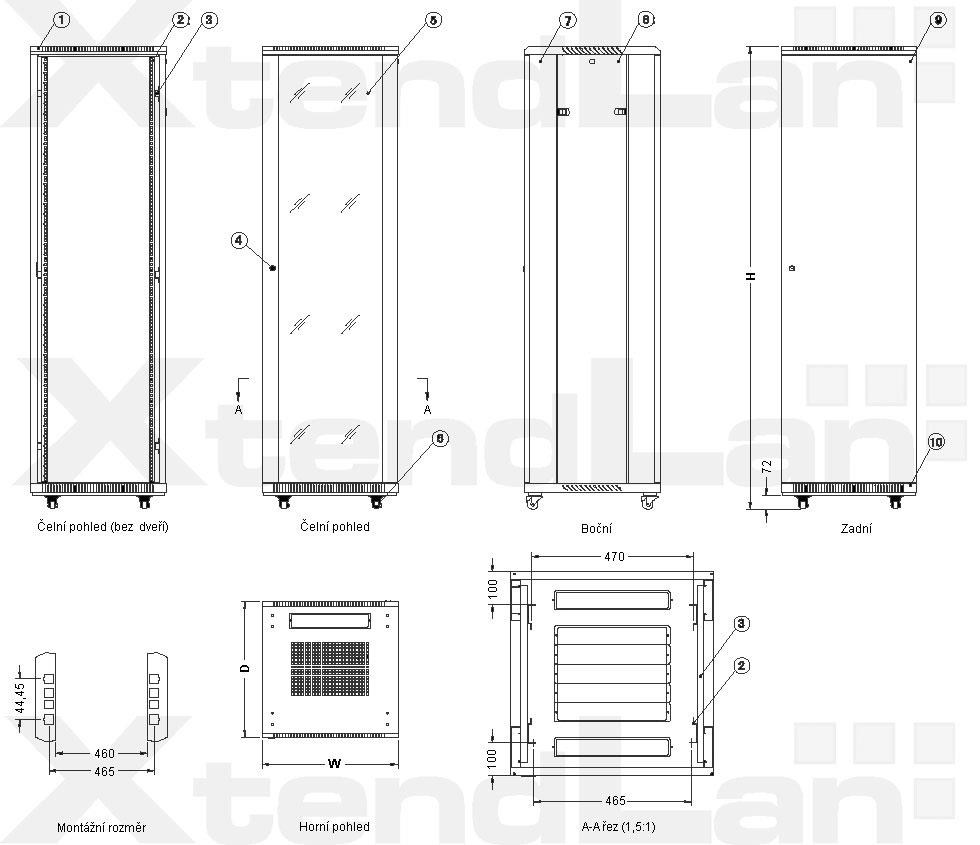 XtendLan 19" stojanový rozvaděč 47U - rozložený