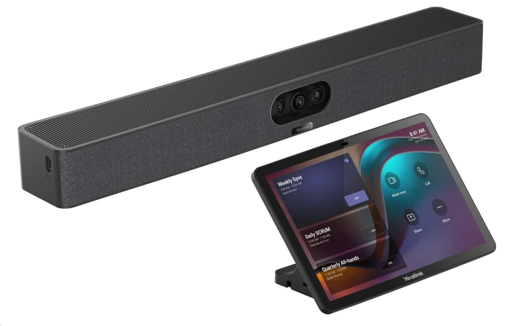Yealink MeetingBar A25 je multifunkční video bar určený pro zasedací místnosti. Je vybaven pokročilým systémem trojitých kamer a nabízí ultraširokoúhlé zorné pole 151° a obraz ve vysokém rozlišení. Obsahuje také vysoce kvalitní reproduktor a 8x MEMS mikrofonní pole. Jeho vestavěná inteligentní technologie redukce šumu poskytuje vynikající zvukový zážitek pro schůzky. Yealink MeetingBar A25 je postaven na operačním systému Android 13 a bude i nadále dostávat budoucí aktualizace, což uživatelům zajistí přístup k nejnovějším funkcím a vylepšením. Kromě toho je kompatibilní s Microsoft MDEP, což zvyšuje zabezpečení a možnosti nasazení. Tato integrace poskytuje uživatelům bezpečnější prostředí a efektivnější procesy nasazení, což přispívá k plynulejšímu a bezpečnějšímu uživatelskému zážitku. Yealink MeetingBar A25 se navíc vyznačuje přímým připojením k CTP25, což umožňuje zjednodušený proces přihlášení. Toto efektivní přihlašování šetří uživatelům čas a zvyšuje pohodlí.